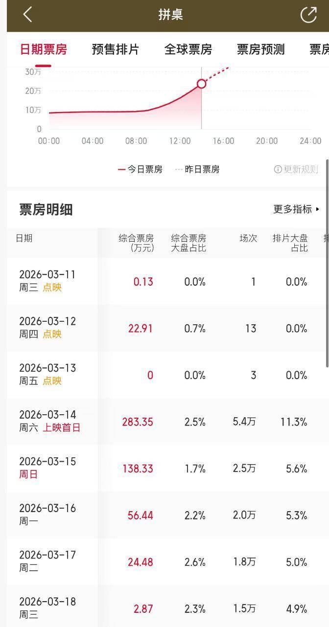 估计影院肠子都悔青了,这些场次分给《飞驰人生3》《镖人》,哪怕是好莱坞动画片,都能收获一些票房。但首日票房不到300万,实在令人哭笑不得。