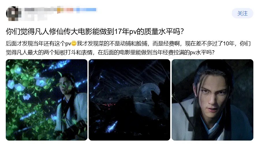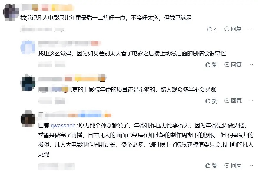但技术可行不意味着制作方会如此行事,这也是粉丝讨论中最为理性的一点。有老粉算过账,像《杀戮都市》那样的高成本CG制作,投入近4亿最终却亏本,这让后来的制作方不敢轻易尝试高成本路线。若凡人大电影要达到十年前那支CG的水准,势必需高额制作经费,加上宣发成本,按影视行业回本规则,最终所需票房数字会使制作方面临极大商业风险。
